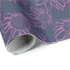 Pink Line Drawn Flower Pattern on Blue Wrapping Paper