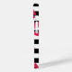 Smooch! Chic phone case features a black and white stripe background overlaid with hot fuchsia pink lip print kisses. Use the optional personalization field to add a name or monogram, or simply delete. Makes a cute gift for makeup artists or beauty enthusiasts.