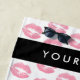 Pink Lips, Kiss, Lipstick, Your Name, Personalise Beach Towel