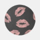 Seamless pattern pink lips kisses prints on dark background. Valentines day texture