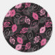 Pink Lips Kissing Pattern Black Ver Classic Round Sticker