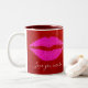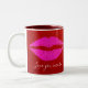 Pink Lips Red Glitter Love You More Script Sparkly Two-Tone Coffee Mug