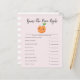 Cute little cutie theme baby shower game card featuring illustrations of an orange fruit on a pink background. The texts are editable. Perfect game to play during the shower. It lists baby essentials and asks guests to guess the price. Whoever guesses the price the closest wins!