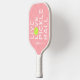 Designer PIckleball Paddle with coral pink and bright neon yellow green quote of "Live Love Pickleball" and your name custom-printed directly on the paddle in an elegant modern calligraphy script cursive font. A subtle net background watermark adds texture to the aesthetic. Colors can be changed with the Design Tool to create your own "I love pickleball" theme paddle.