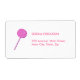 Lollypop (or Lolly pop or Lollipop) is a piece of hardened candy attached to the end of a small stick. Children are very fond of this type of candy. The present design is a lollipop of a bright pink color and a round shape, and is found at the bottom left of this label. This pink round Lolly pop / Lollipop is also available on other matching products. Labels are of 3 different sizes. © Morning 6