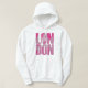 The Pink London design incorporates three graphic depictions of Big Ben in a light grey color, onto a tall, bold and bright pink font. The letters that spell the word London are stacked. Show your love for London with the Pink London design.