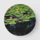 pink lotus black round clock