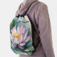 Pink Lotus Flower Drawstring Bag with the opportunity to add customize and add text. Use for your Business Name, or just personalize it with your name for your own use.