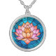 Pink Lotus Flower Mosaic Stained Glass Silver Plated Necklace