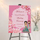 Pink lotus flowers with cute Indian bridal couple illustration Hindu wedding personalized welcome sign. Can change function - ceremony - reception - sangeet.