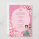 Pink lotus flowers with cute Indian bridal couple Invitation