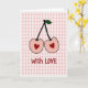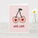 Pink Love Cherries Gingham Card