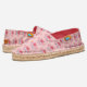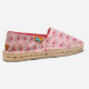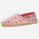 This awesome pair of espadrilles features a cute cartoon of a pink owl with sleepy eyes, a small beak and cute little feet. The owl has a big red love heart in the middle of its belly and wings wide open ready to give someone a big hug.