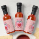 This awesome set of Wedding hot sauce favors features a cute cartoon of a pink owl with sleepy eyes, a small beak and cute little feet. The owl has a big red love heart in the middle of its belly and wings wide open ready to give someone a big hug.