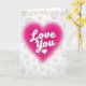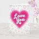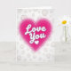 This greeting card shows a large magenta heart in the center, with a soft glow around its edges that makes it feel warm and romantic 💘. Inside the heart, the words “Love You” appear in smooth, flowing white letters, placed right in the middle. Just below the words, there’s a small white heart that adds a sweet touch ❤️. The big heart is outlined with a dashed white line that looks like stitching around the shape. Behind it all, the background is white with light beige swirl patterns that resemble simple floral curls spread across the page. The design feels calm and affectionate, with the bright heart standing out clearly against the softer background. It’s a nice choice for a partner, close friend, or anyone you care about 😘.