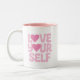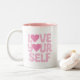 Pink Love Yourself Quotes Two-Tone Coffee Mug