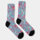 Pink Lovebirds in Blossom Tree on Blue Sky Floral Socks