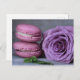 An absolutely exquisite photograph of the most delectable pink Macarons you ever did see, delicately embellished with a stunning lavender purple rose and green sprig. A very country cottage feel, meets Paris bakery. A truly extravagant image, sure to captivate any receiver.