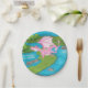 A pink magic dragon flying across a landscape. This design looks really effective on these Paper Plates