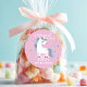 Featuring a pink unicorn with pastel stars and confetti, these stickers are perfect for party favors and decor.