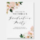 Welcome guests to your event with this customizable graduation party welcome sign. It features watercolour pink magnolias and hydrangeas with faux rose gold accents. Personalize by adding your details. This blush pink floral graduation welcome sign is perfect for spring and winter graduation parties.