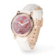 I was pleasantly surprised by the good quality of this watch. It's an easy size to wear on a small wrist and both the band and the watch are well made. I also liked the translucent case the watch is packaged in. The printing is crisp and clear and shows off my Create With Photos oyster flower design well.