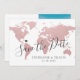 Dusty pink world map save the date card for a destination wedding with a moveable heart location marker and your engagement photo alongside cute and elegant modern typography that's pretty and minimalist. Perfect for tropical, beach, island, city, mountain and adventure destination wedding locations all over the world. Click CUSTOMIZE FURTHER to move the heart, change the background and text color, change fonts. Check our designer shop for coordinating items!