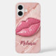 Make a bold statement with this stylish iPhone case featuring a glamorous pair of glossy pink lips against a luxurious pink marble background. The sleek, modern design is further enhanced with personalized text, allowing you to add your name or a word of your choice in a chic script font for a truly unique touch. Ideal for those who love fashionable and eye-catching accessories. Whether you're treating yourself or gifting someone special, this case offers both style and protection for everyday use.