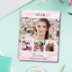 Create your own unique photo collage. Use four, 4 of your favorite photo. Personalize and a year, name and text. Pink marble print as background, black text.