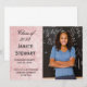 Let everyone know you've graduated and what you're planning next. Graduation announcement with your photo and a pink marbled text area.