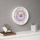 Soft pink pastels in a sphere surrounded by speckled small silver dots on a pink marble backdrop for contrast. Can be personalized. Stylish girly vibes.