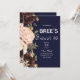 Pink & Maroon Floral Greenery Navy Blue Sweet 16 Invitation