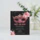 Girly glitter with fancy script name typography. Pink Roses and faux glitter border. Fancy pink masquerade mask. Great for quince celebrations. All text is adjustable. Beautiful floral and faux glitter sparkle design.