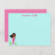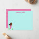This custom stationery for kids features a sweet mermaid in pink. She has black hair and swims with her pink starfish friend among the seaweed. This stationery can be personalized with a name or text of your choice. Feel free to change the font and font color if you'd like. The backside features a pink scalloped pattern.