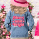 Pink Merry & Bright Christmas Personalized Name Denim Jacket