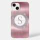 Pink Metal Diamonds Monogram Sparkly Luxurious Case-Mate iPhone 14 Case. Luxurious design with pink metallic look and a customizable monogram and name surrounded by beautiful sparkly diamonds. Great for getting your bling on! This design is pretty and feminine.