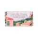 This return address label features painted artwork of a Mexican town. Colors include green, pink, white and coral.