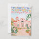 This destination wedding response card features painted artwork of a Mexican folk dancer surrounded by tropical flowers. All the important wedding details can be personalized. Colors include green, pink, white and coral.