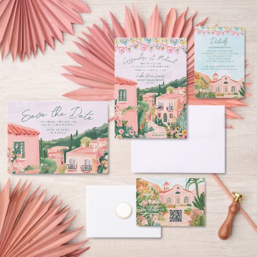 Pink Mexico Destination Wedding Invitation