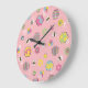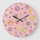 Pink Midcentury Retro Honey Bee Pattern Large Clock