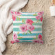 Pink, Mint and Gold floral Pillow. Watercolor Peonies. Mint and white stripes