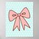 A big pink bow on a mint green background decorates this cute poster. Use this pretty pink bow wall decor in a nursery, bedroom, bathroom, etc....The design is from original art.