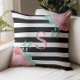 Pink Mint Green Floral Monogram Black Stripes Throw Pillow