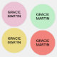 Pink, mint, and yellow round iron-on labels personalized with a name. These labels are perfect for labeling clothing for back to school. The background color and text are fully customizable when you use Zazzle's design tools. Contact me for assistance with your customizations.