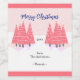 This Christmas wine label is ready to be personalized with your own text. Printed with a modern abstract style clusters of Christmas trees in pink and white colors on a snowy pink and white background. Edit all text as desired.