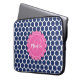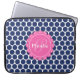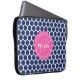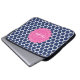 Pink Modern Flower Monogram Blue Polka Dot Pattern Laptop Sleeve