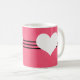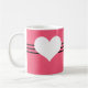 Sweet and charming Modern Heart Mug featuring a magenta background and a cute heart and striped border. This cute and girly mug is perfect for enjoying your favorite hot beverage! Customize with the text of your choosing. Click on "Customize" to find additional personalization options.