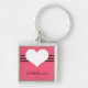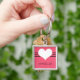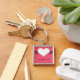 Sweet and charming Modern Heart Premium Keychain featuring a magenta background and a cute heart and striped border. This cute and girly keychain will keep your keys together with style. Customize with the text of your choosing. Click on "Customize" to find additional personalization options.