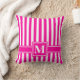 Pink Modern Stripe with Monogram Throw Pillow