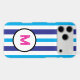 Pink Monogram Blue White Summer Stripes Case-Mate iPhone Case